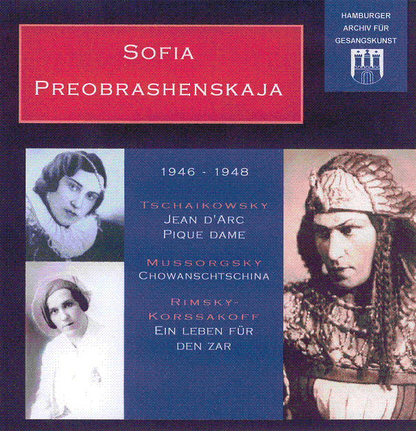 03 Szene Marfa/Golizin; 2. Akt mit Ulianow; Khaikin/KirowOrch; 1947 6.42 04 Szene Marfa/Suzanna2. Akt; mit Serval, N.; Khaikin/KirowOrch; 1947 4.37 05 Rimsky-Korsakow : Ein Leben für den Zaren (A life for the Zsar)Szene Ljuba/Bomelio 2. Akt; mit Cesnokow; Khaikin/KirowOrch; 1947 13.36 06 Tchaikovsky : Pique Dame : Szene der Gräfin2. Akt; Elzin/KirowOrch; 1947 6.59 Tchaikowsky : Jean d’Arc07 Halt, halt, you are dead!Jean/Lionel; 3. Akt; mit Solomiak; Khaikin/KirowOrch; 1946 9.37 08 Szene der Jean1. Akt; Khaikin/KirowOrch; 1946 9.13